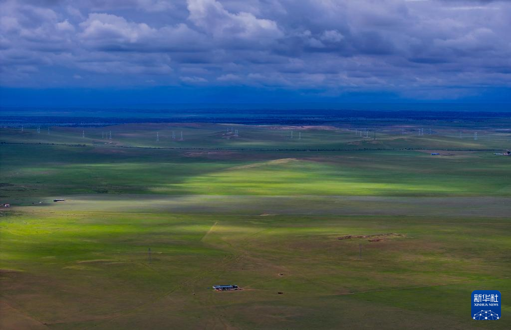 这是7月16日在内蒙古锡林郭勒盟拍摄的西乌珠穆沁草原风光(无人机照片)。(新华社记者 连振 摄)