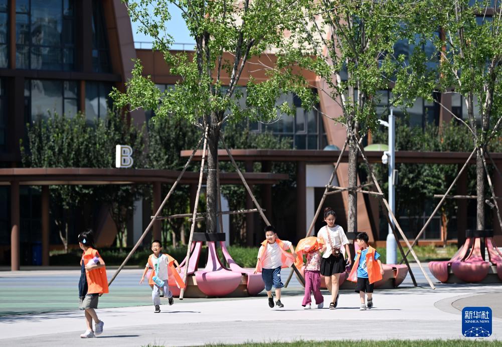 老师带着孩子们前往教室(7月18日摄)。(新华社记者 李然 摄)