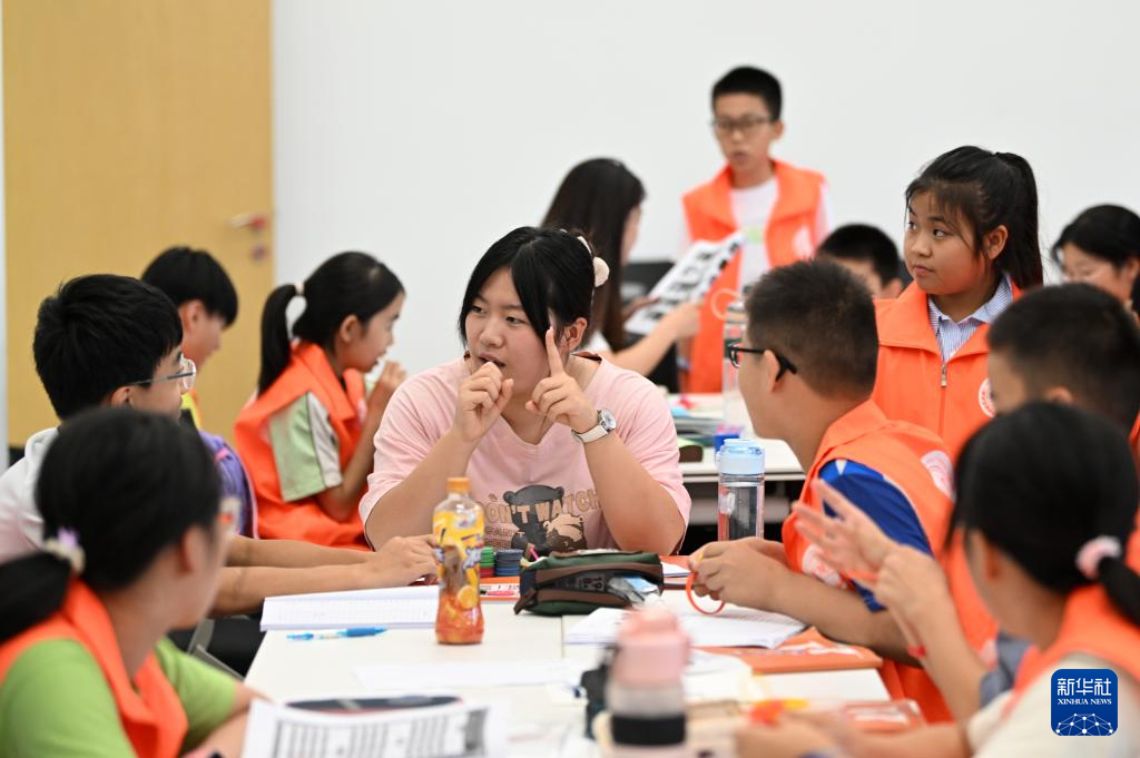 老师和孩子们在交流记忆方法(7月18日摄)。(新华社记者 李然 摄)
