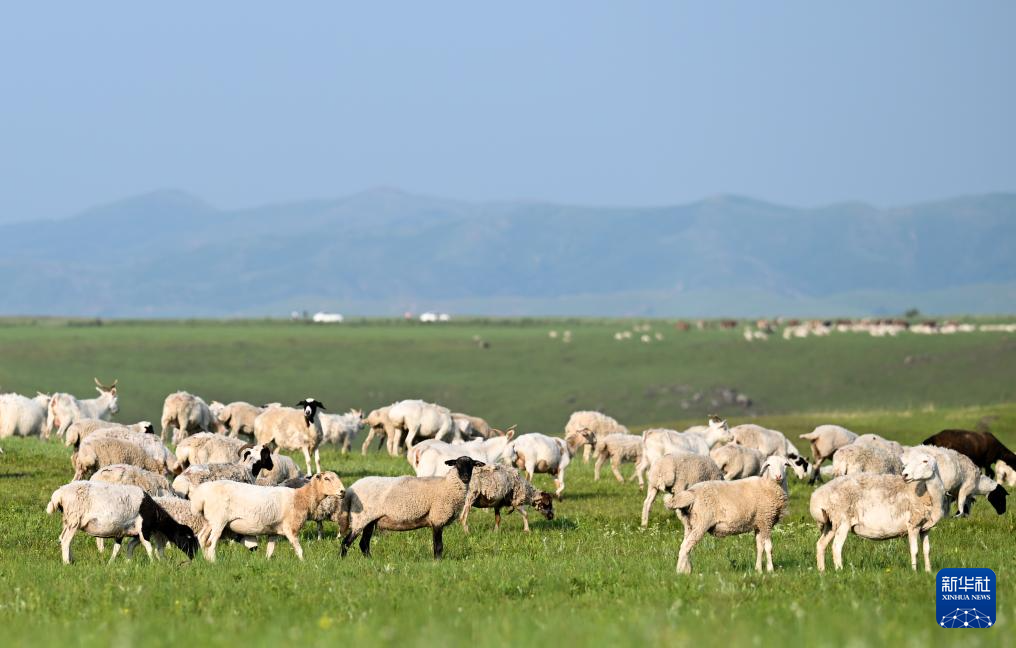 7月18日拍摄的乌兰毛都草原上的羊群。(新华社记者 贝赫 摄)