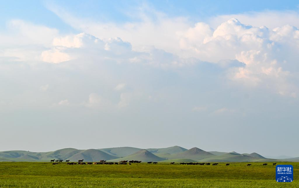 夏日,位于内蒙古兴安盟科尔沁右翼前旗的乌兰毛都草原绿草如茵,景色宜人。