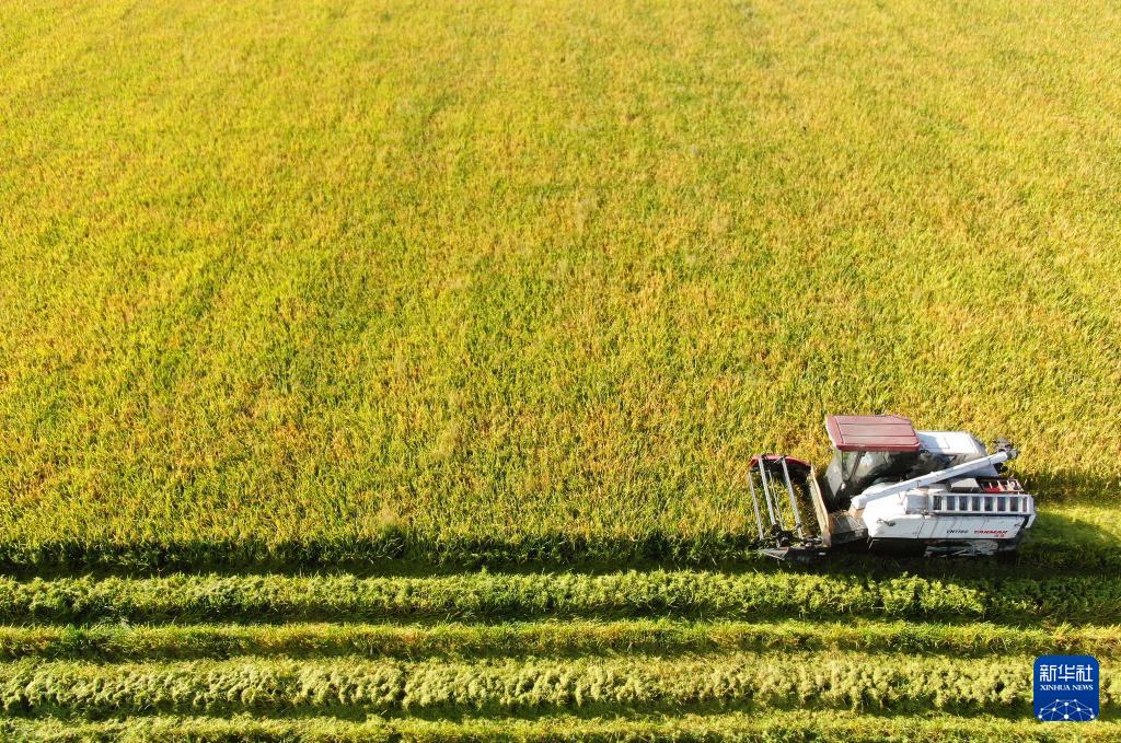 7月22日,在安徽省合肥市庐江县郭河镇广寒村河广家庭农场,农机手操作农机收割早稻。(新华社发 左学长 摄)