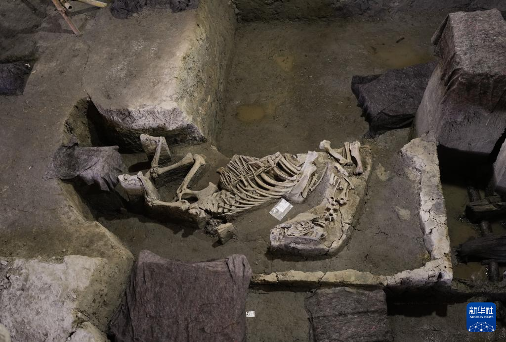 这是7月23日在稽中遗址考古发掘现场拍摄的古越国时期的马遗骸。(新华社记者 翁忻旸 摄)