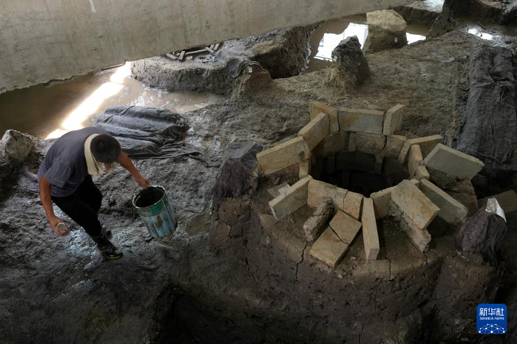 这是7月23日在稽中遗址考古发掘现场拍摄的一处水井遗址。(新华社记者 翁忻旸 摄)