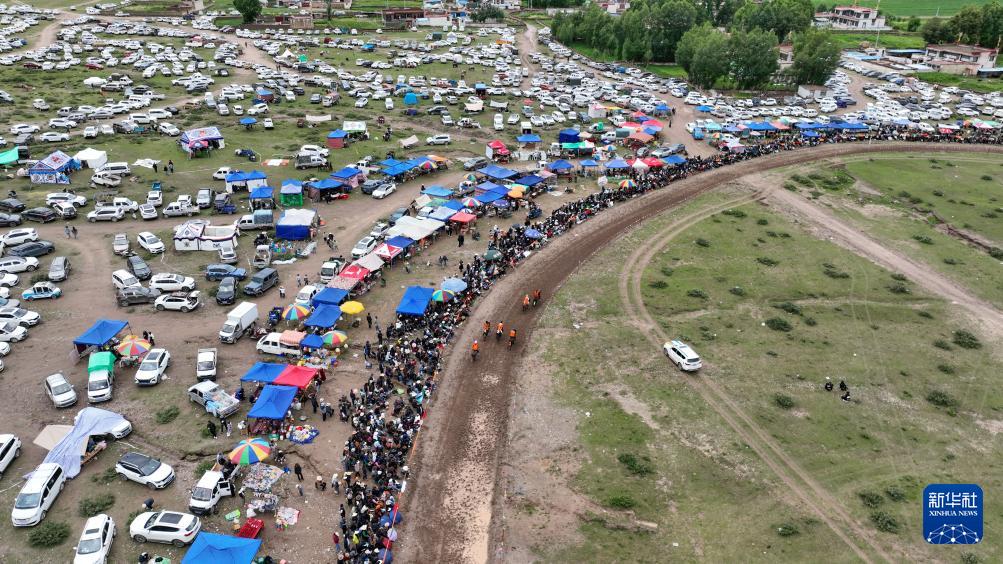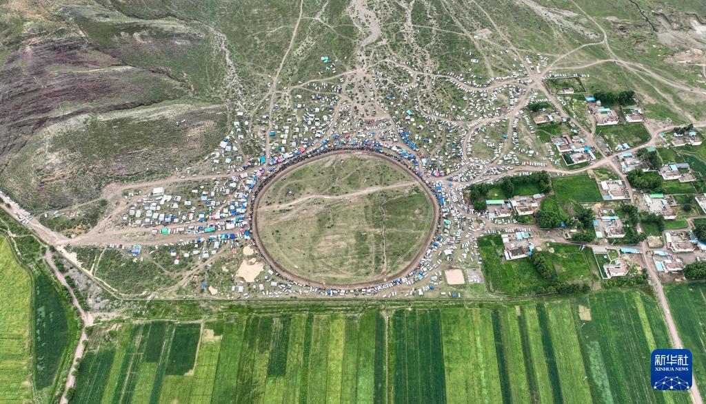 7月23日拍摄的拉萨甘丹曲果镇赛马场上的走马比赛(无人机照片)。(新华社记者 晋美多吉 摄)