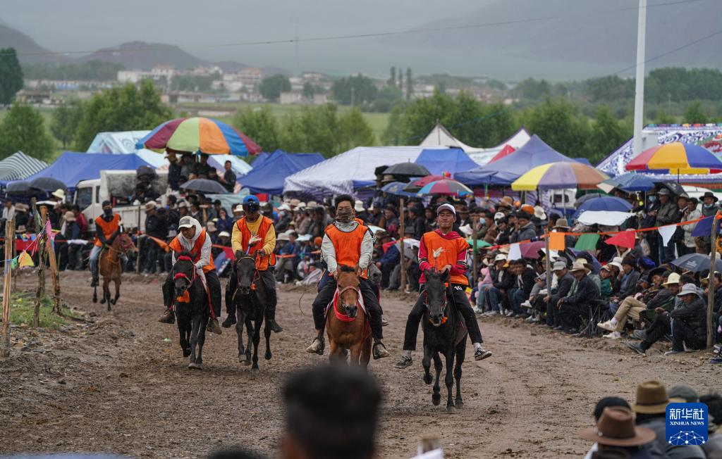7月23日,在西藏拉萨林周县甘丹曲果镇的赛马场上,200多匹赛马角逐各级别走马比赛桂冠。赛马选手大多来自附近乡镇,也不乏从那曲等地远道而来。