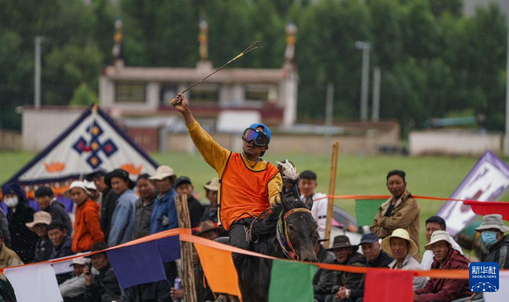 7月23日,选手在拉萨甘丹曲果镇赛马场参加走马比赛。(新华社记者 晋美多吉 摄)