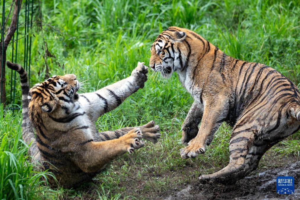 这是7月29日在黑龙江东北虎林园拍摄的东北虎。(新华社记者 张涛 摄)