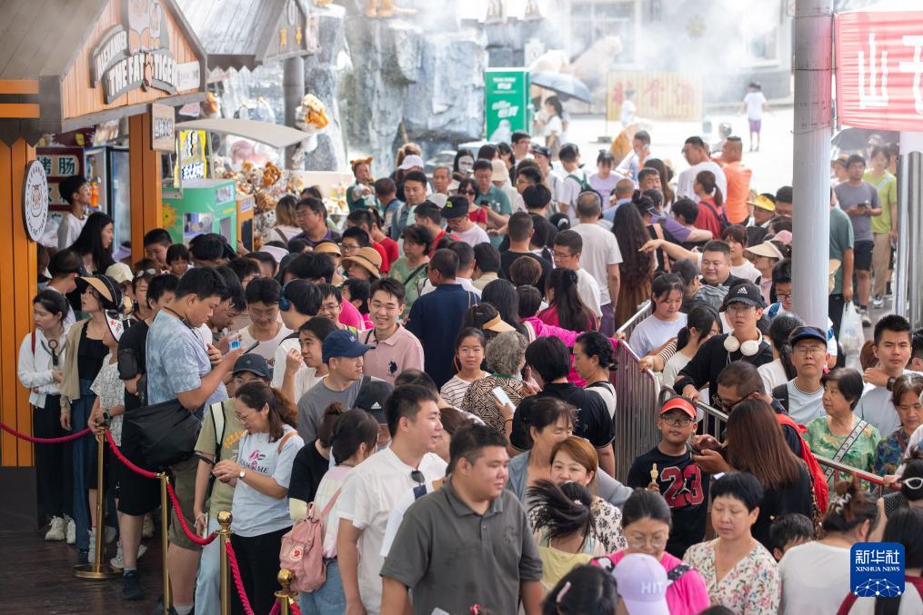 7月29日,在黑龙江东北虎林园,人们排队准备入园。(新华社记者 张涛 摄)