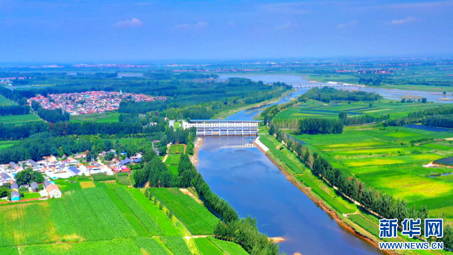 夏末秋初,青岛市大沽河即墨段碧波荡漾,沿岸绿意盎然,色彩斑斓的植物与蓝天碧水构成一幅美丽的生态画卷。