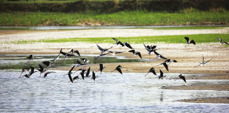 3.汾河文水段生态环境改善,吸引大批水鸟前来觅食休憩。 梁大智摄