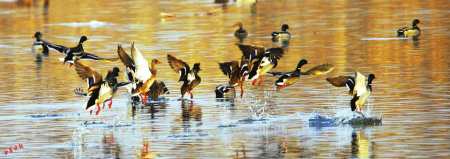 4.鸟类在水面自由嬉戏。 赵文忠摄