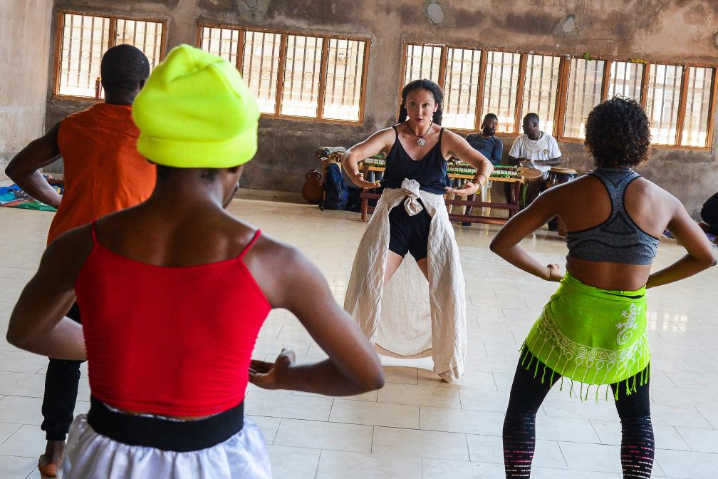 这是中国舞蹈演员蒋可钰在喀麦隆首都雅温得教年轻人跳舞。