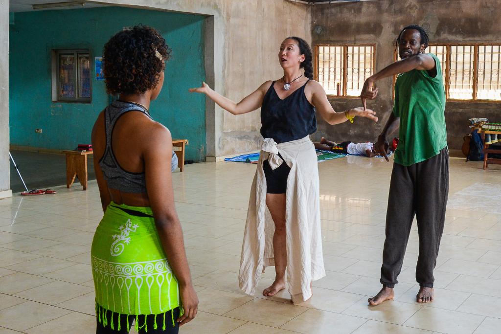 为了让没有任何专业基础的喀麦隆学生们理解现代舞,娜尔斯和蒋可钰还想到用中国太极和源于印度的瑜伽,向学员们讲解太极圆弧运动和道家哲学思想,让学生们领会中国太极和东方文化的思想内涵,催化了中非古老文化的融合。