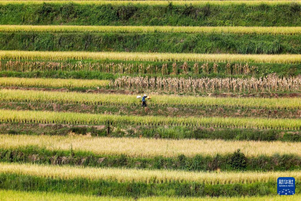 8月21日,村民在贵州省黔南布依族苗族自治州罗甸县沫阳镇的田间搬运刚收割的稻谷。(新华社发 史传鸿 摄)