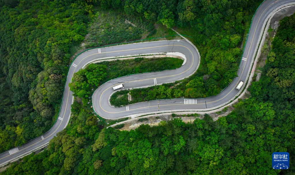 8月24日,游客乘坐景交车在宁夏六盘山国家森林公园游览(无人机照片)。(新华社记者 冯开华 摄)