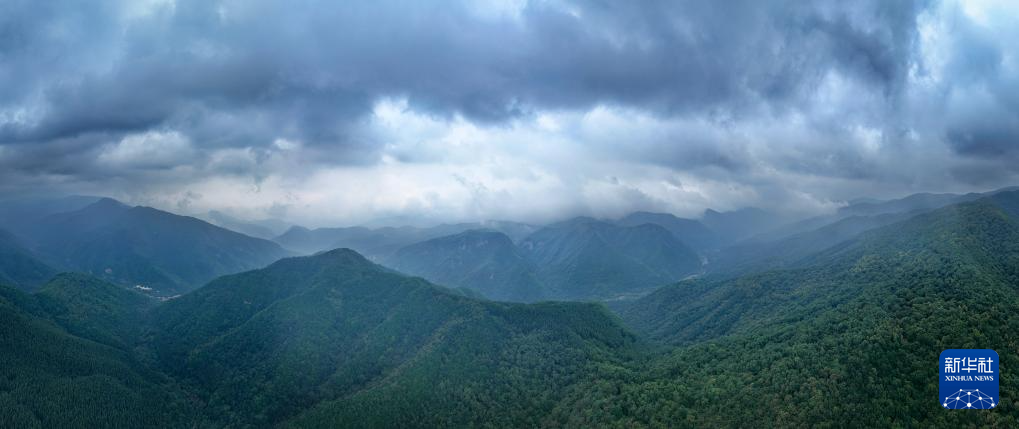 这是8月24日拍摄的宁夏六盘山国家森林公园风光(无人机全景照片)。(新华社记者 冯开华 摄)