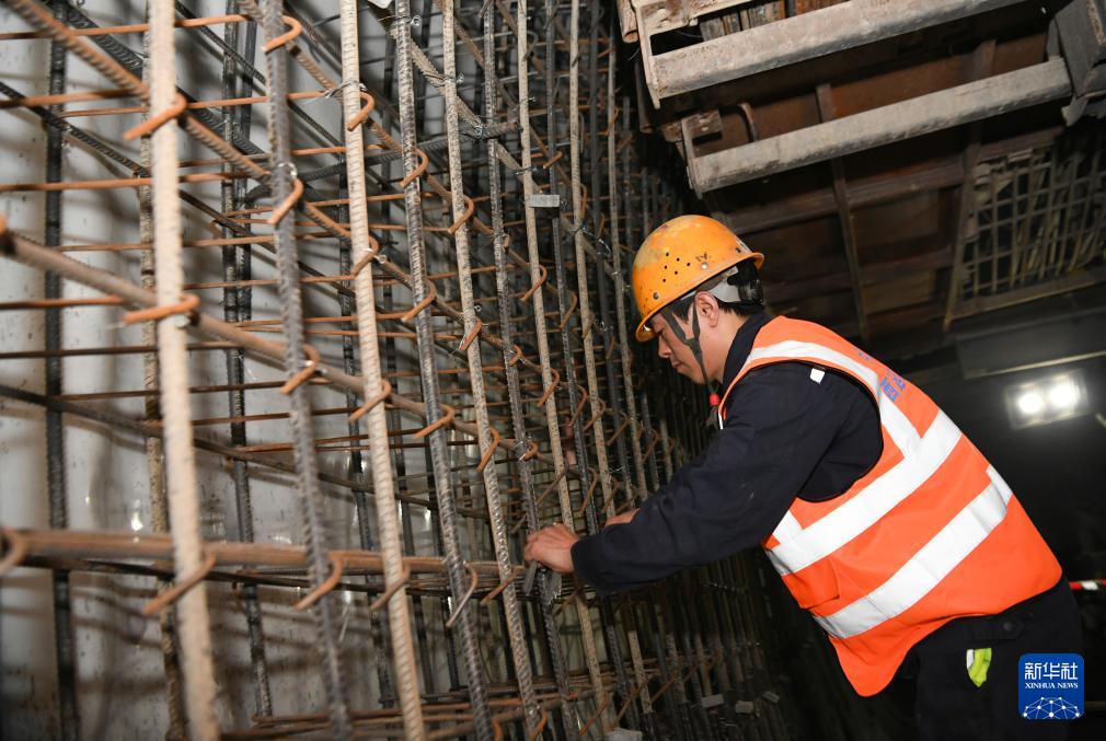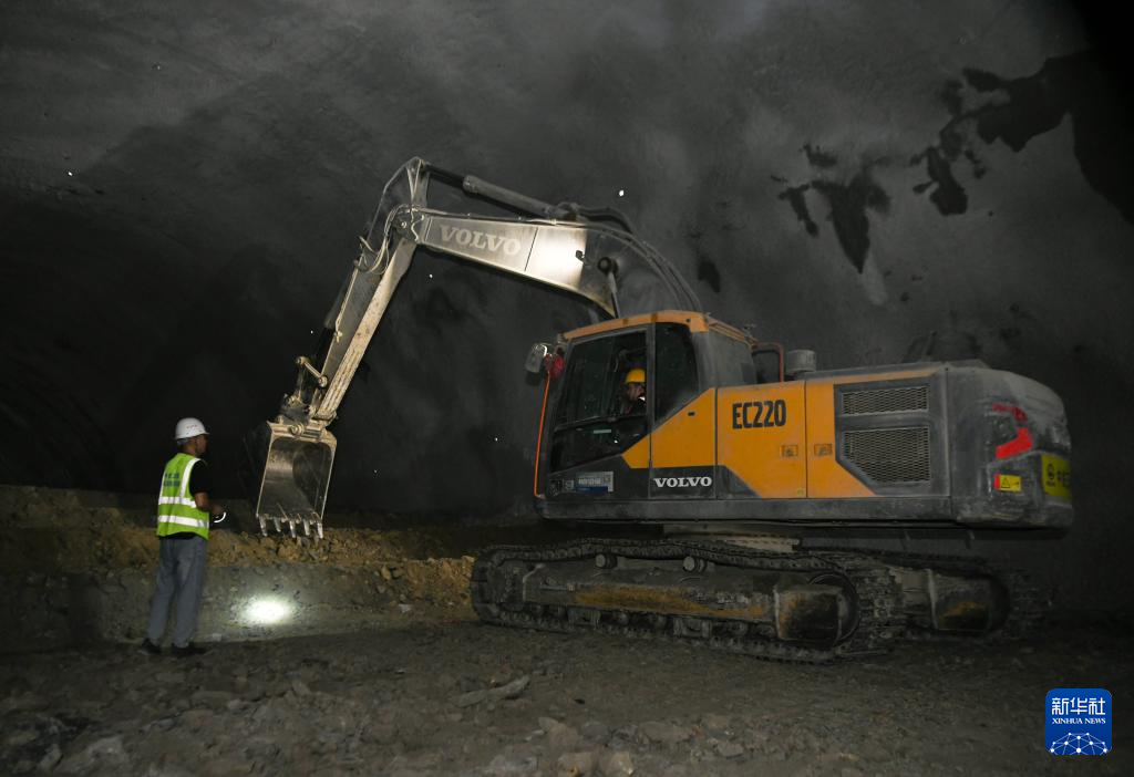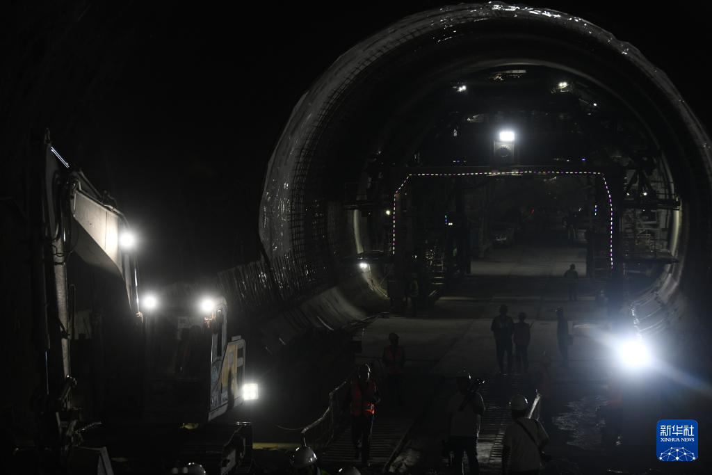 8月25日,中铁三局施工人员在西延高铁武家塬隧道施工。(新华社记者 张博文 摄)