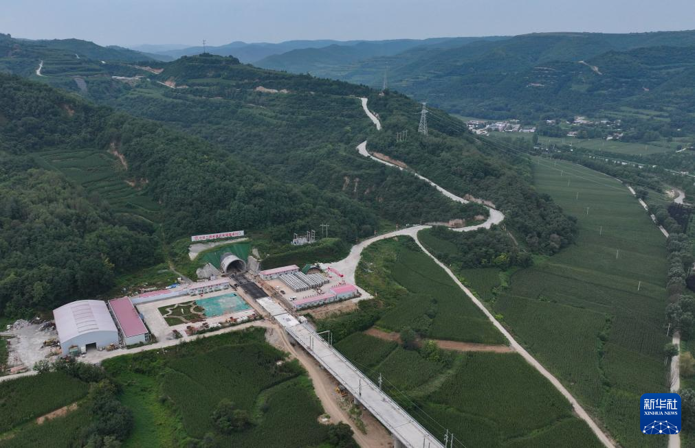 这是西延高铁武家塬隧道出口(8月25日摄,无人机照片)。(新华社记者 张博文 摄)