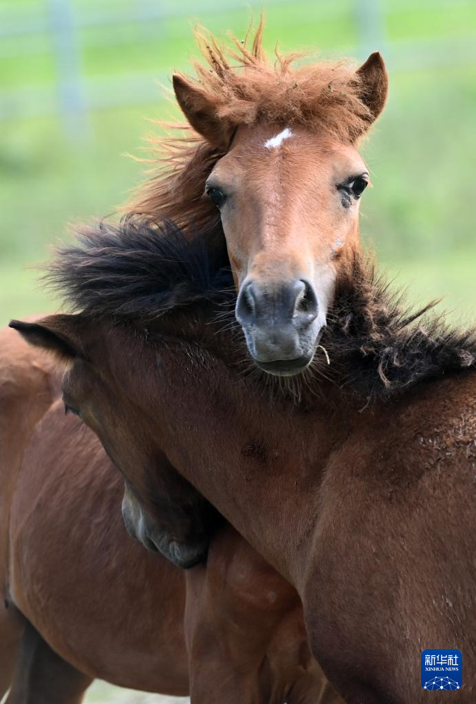 8月27日,在广西德保矮马王国,两匹德保矮马在一起。(新华社记者 陆波岸 摄)