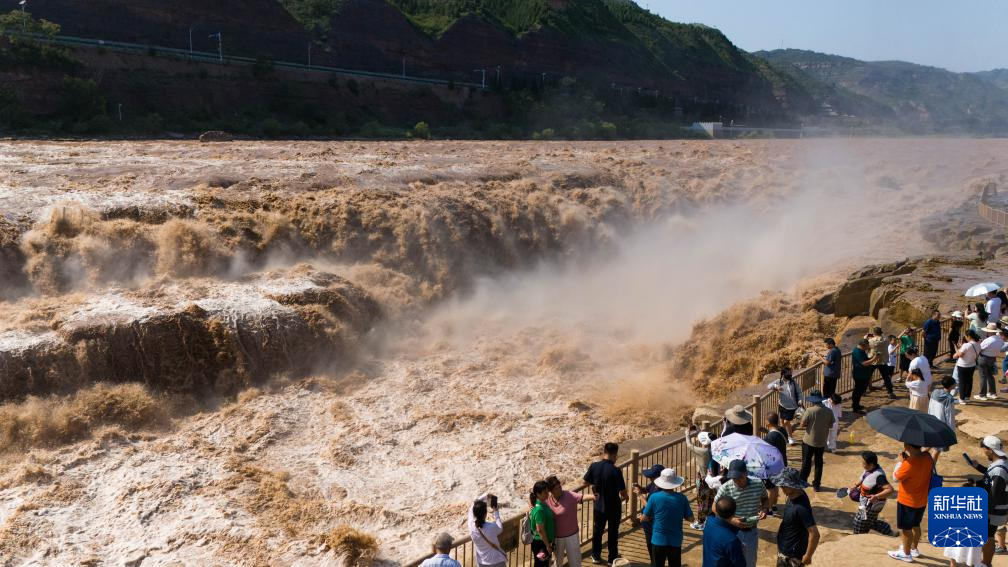 近日,位于陕西省宜川县和山西省吉县交界处的黄河壶口瀑布水量大增,形成绵延数百米的壮美瀑布群。