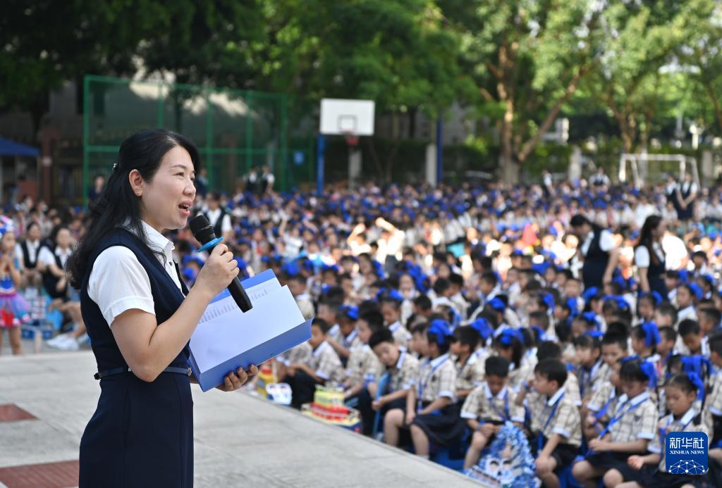 9月2日,广西南宁市滨湖路小学校长谢小燕在给孩子们讲思政课。(新华社记者 周华 摄)