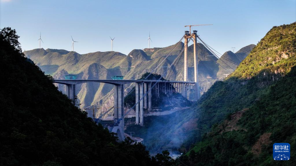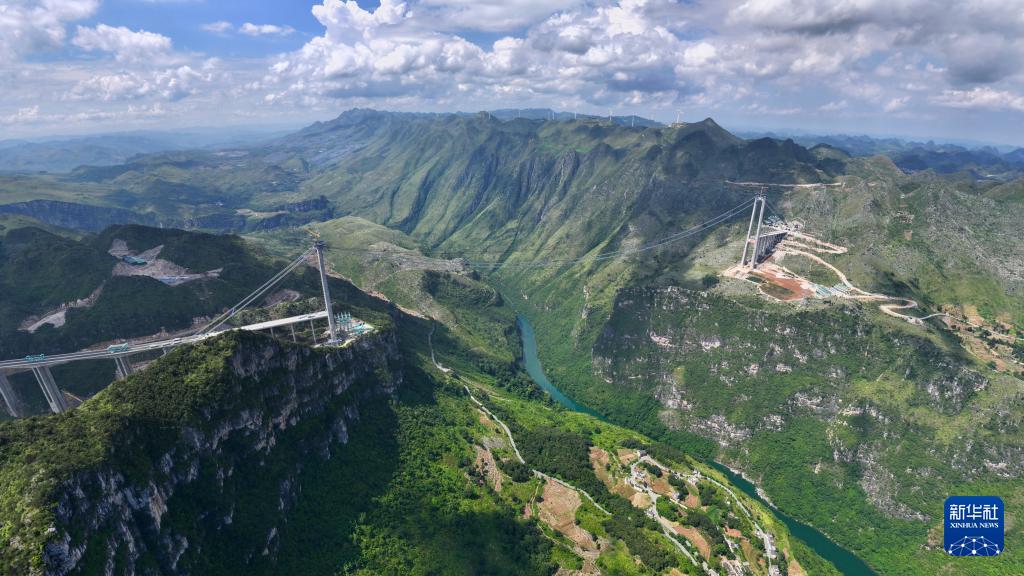 这是建设中的花江峡谷大桥(9月3日摄)。(新华社记者 刘续 摄)