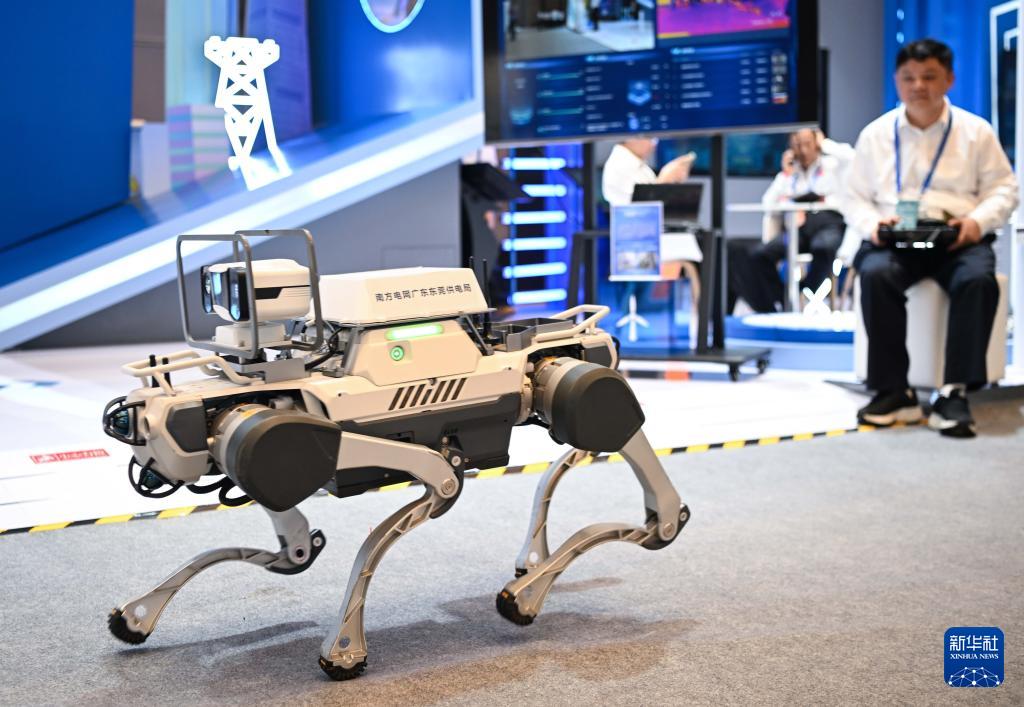 9月8日,网络安全博览会上的企业展示电网巡线机器狗。(新华社记者 邓华 摄)