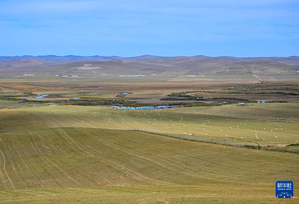 这是9月17日拍摄的打过草的乌拉盖草原。(新华社记者 彭源 摄)