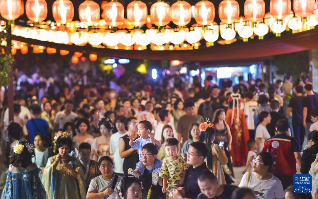 9月16日晚,游客在河南省洛阳市洛邑古城景区休闲游玩。(新华社发 黄政伟 摄)