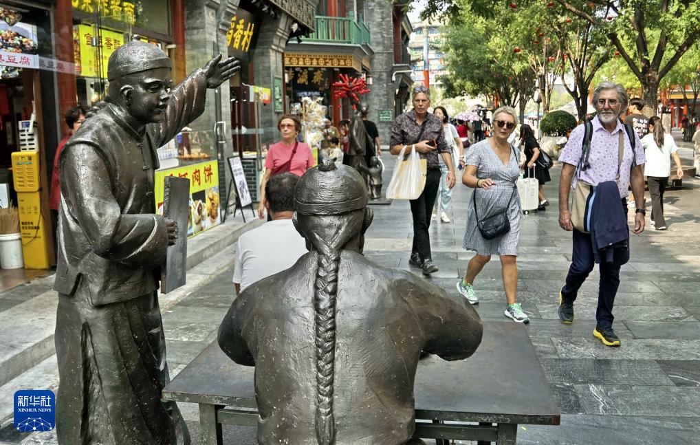 9月19日,外国游客在前门大街游览。(新华社记者 李欣 摄)