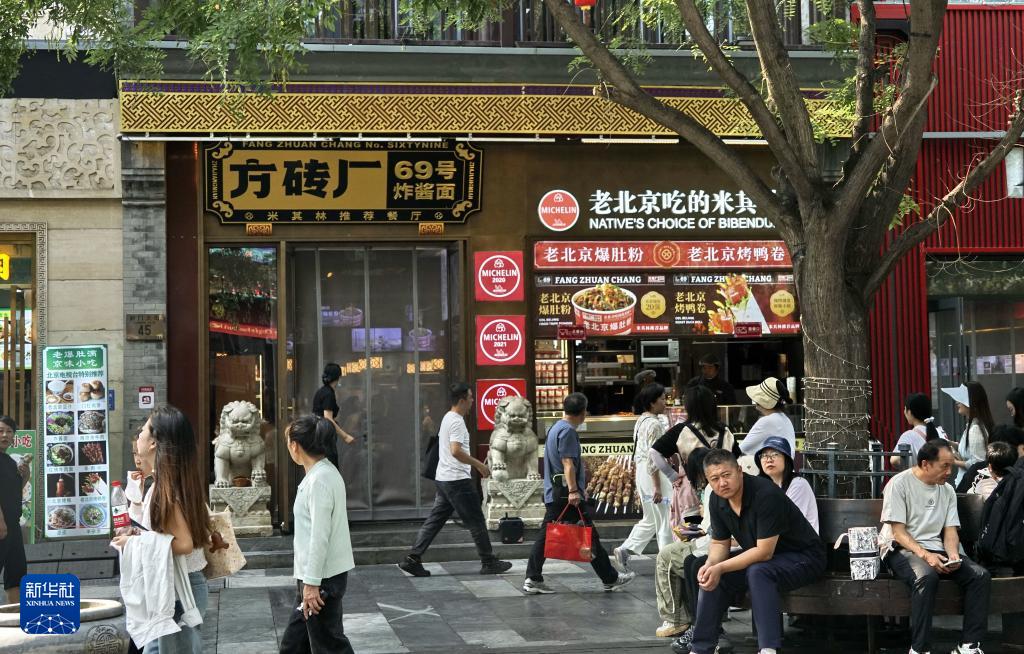 9月19日拍摄的前门大街上的特色餐饮店。(新华社记者 李欣 摄)