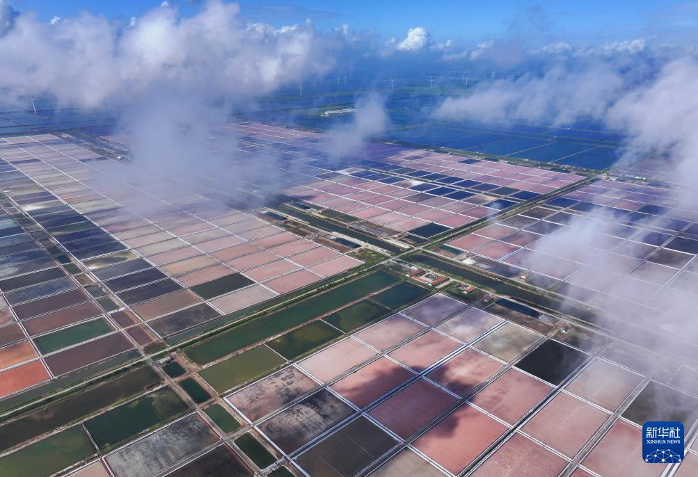 这是9月19日拍摄的江苏省连云港市灌西盐场盐田(无人机照片)。(新华社发 王健民 摄)