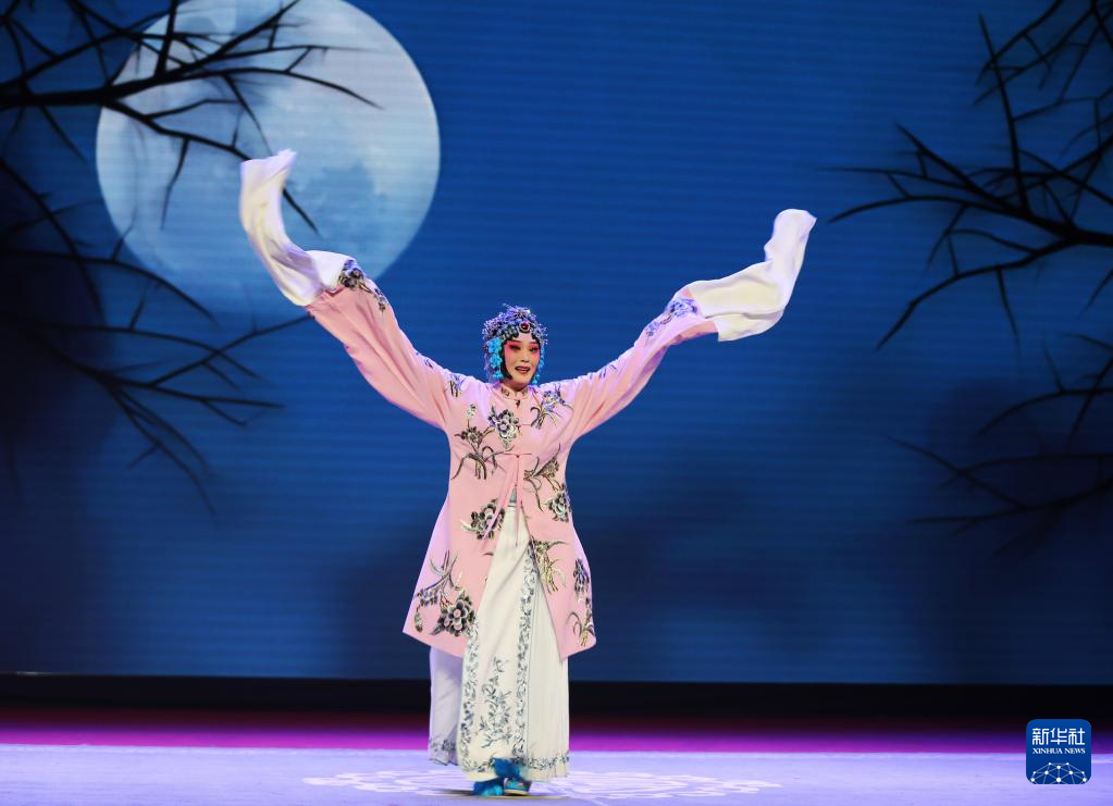 9月21日,参赛者孙倩倩在甘肃省白银市会宁县表演越调《春闺梦》。(新华社发 王克贤 摄)