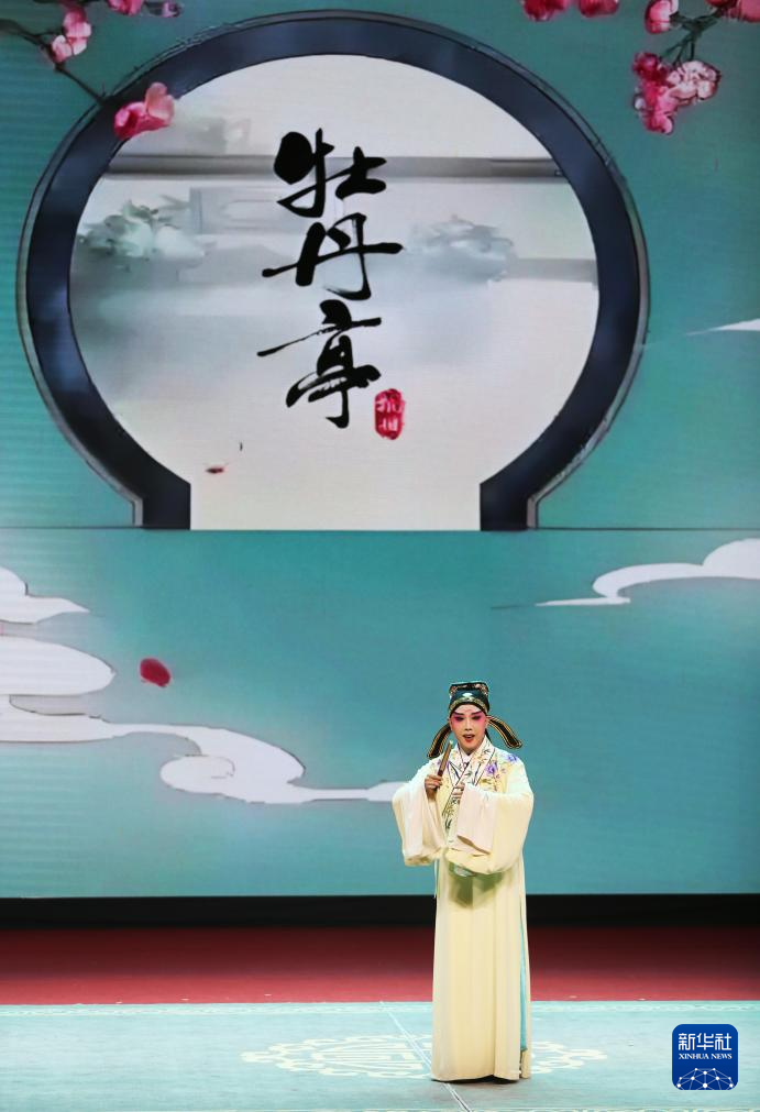 9月21日,参赛者王奕铼在甘肃省白银市会宁县表演昆曲《牡丹亭》。(新华社发 王克贤 摄)