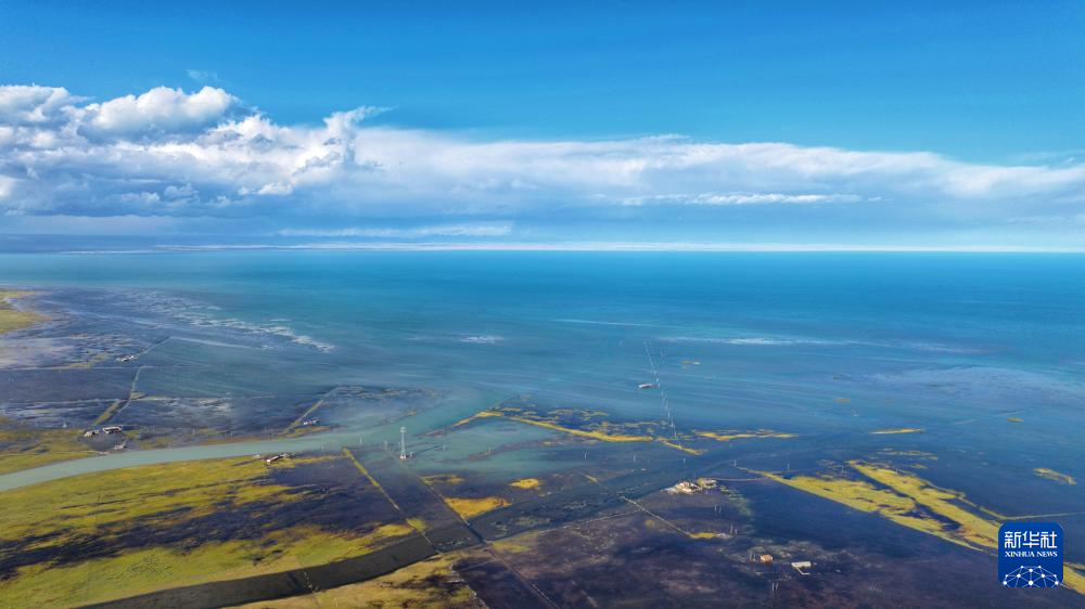 这是9月24日在青海省海北藏族自治州刚察县拍摄的青海湖(无人机照片)。(新华社发 潘彬彬 摄)