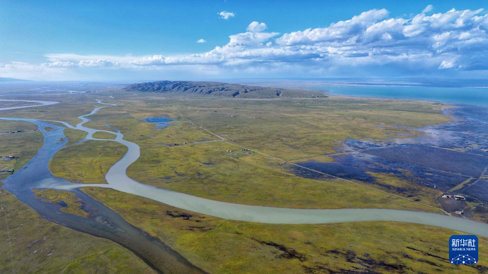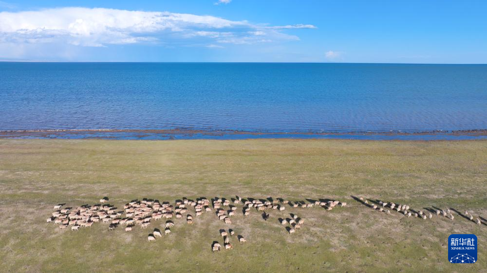 这是9月24日在青海省海北藏族自治州刚察县拍摄的青海湖(无人机照片)。(新华社发 宋忠勇 摄)