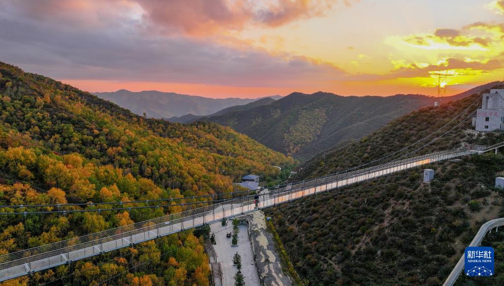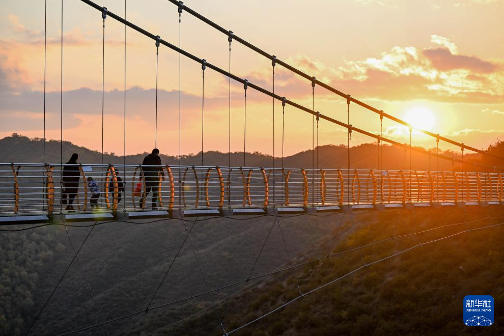 10月6日,游人在林胡古塞旅游区内的玻璃桥上行走。(新华社记者 连振 摄)