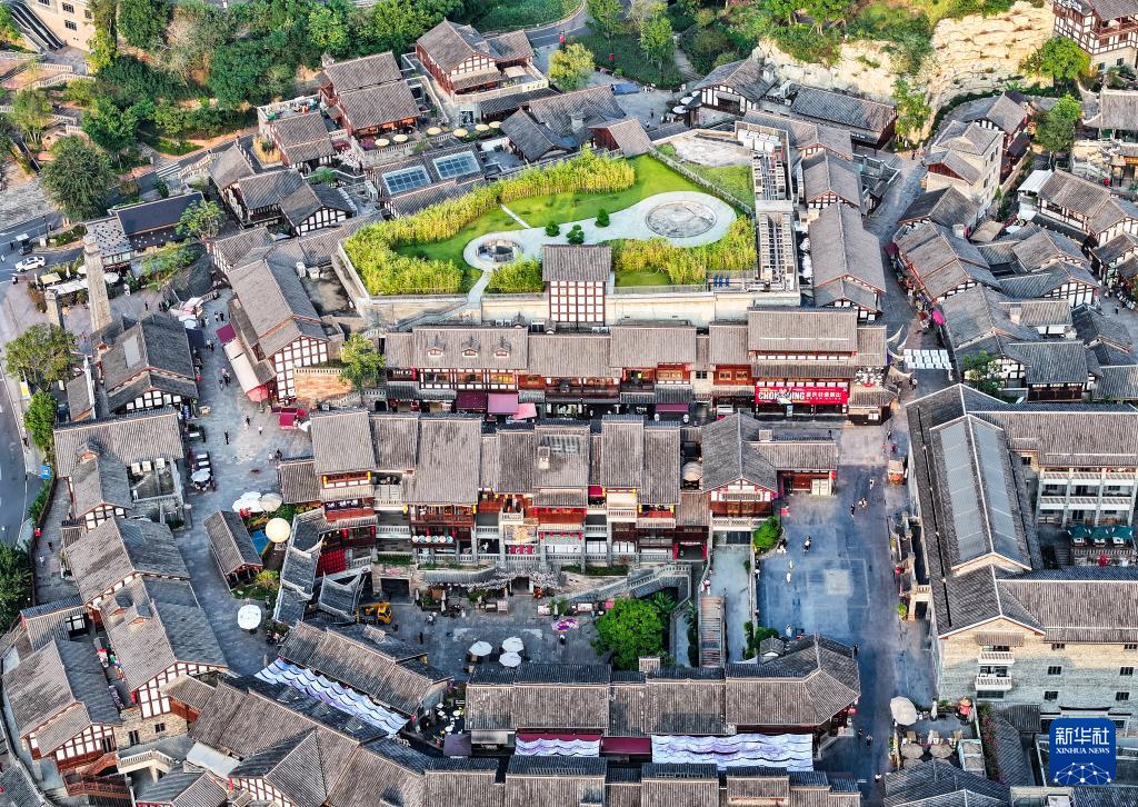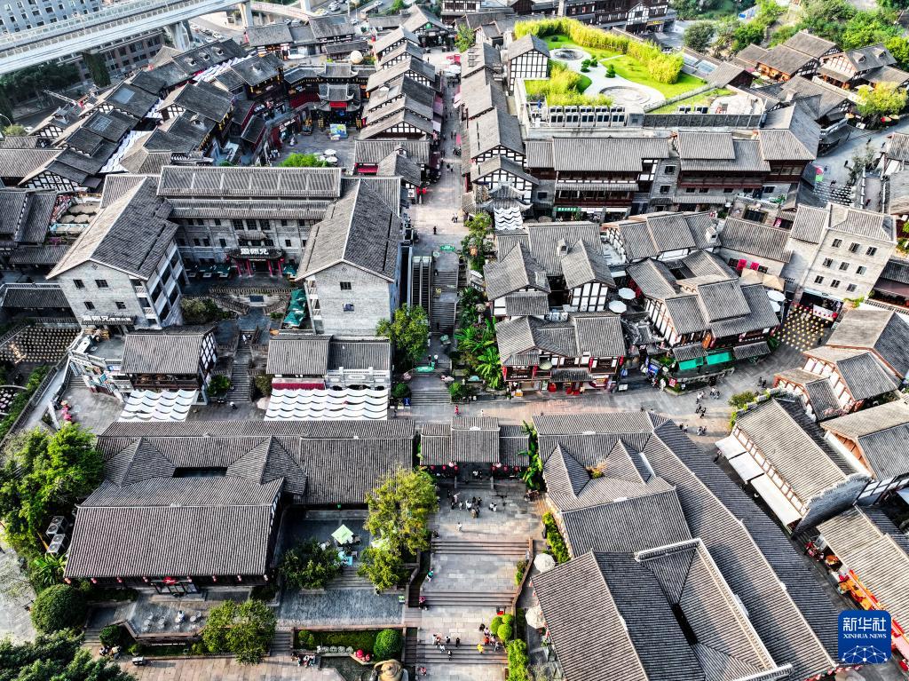 这是10月9日拍摄的重庆磁器口古镇景象(无人机照片)。(新华社记者 王全超 摄)