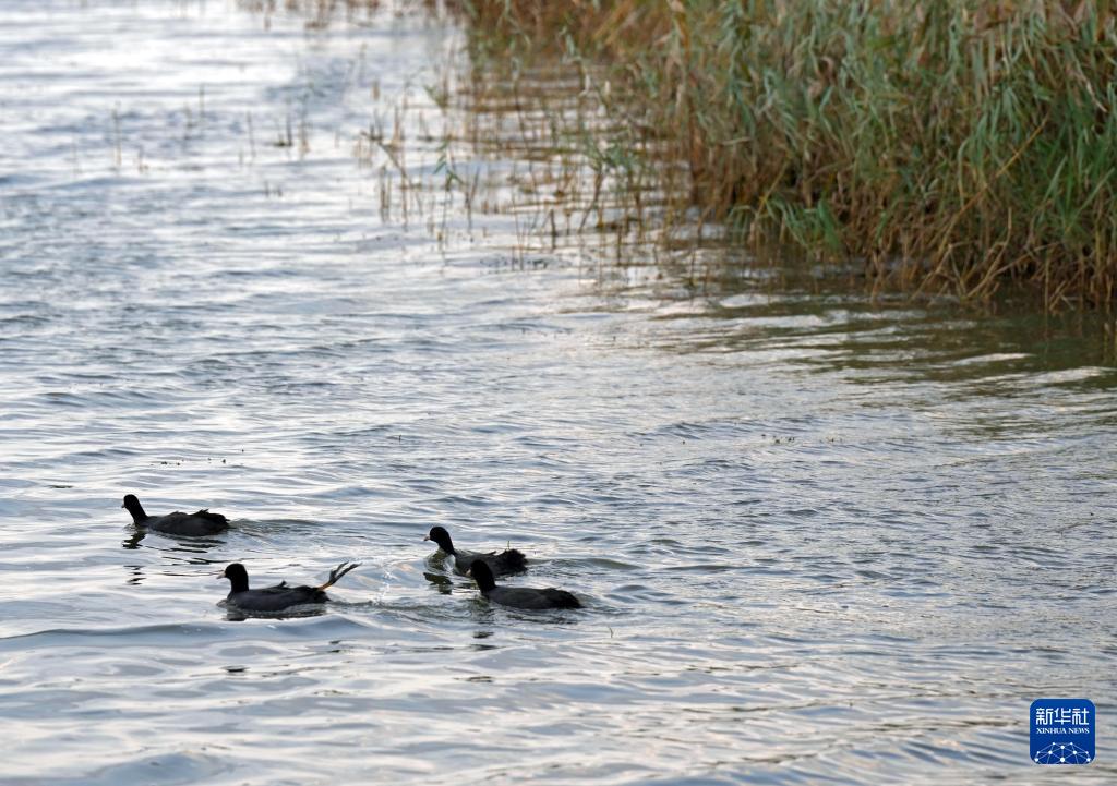 10月10日在富锦国家湿地公园拍摄的水鸟。(新华社记者 刘颖 摄)