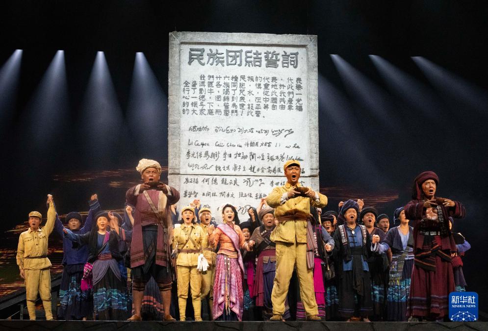 10月13日晚,由云南省话剧院制作出品的民族史诗话剧《澜沧水长》在云南省大剧院上演。该剧生动展现了新中国成立之初云南各民族代表共同立下普洱民族团结誓词碑的过程。