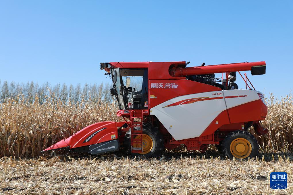 10月13日,在北大荒集团黑龙江七星农场有限公司的玉米地号,无人驾驶收割机在工作。(新华社发 党爱河 摄)