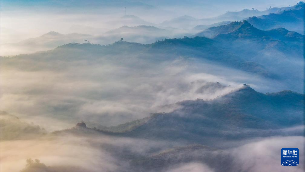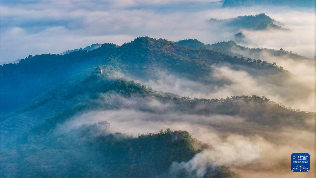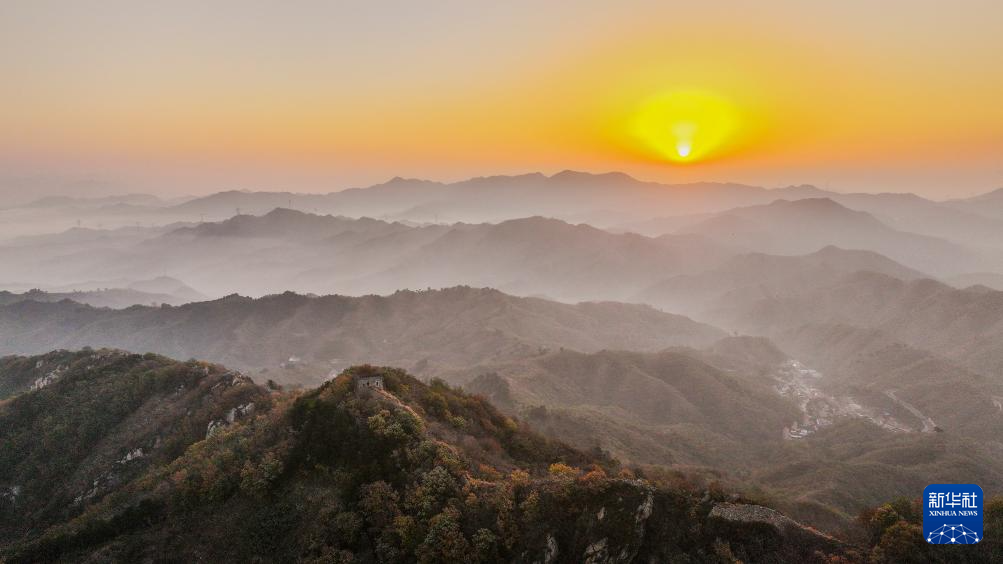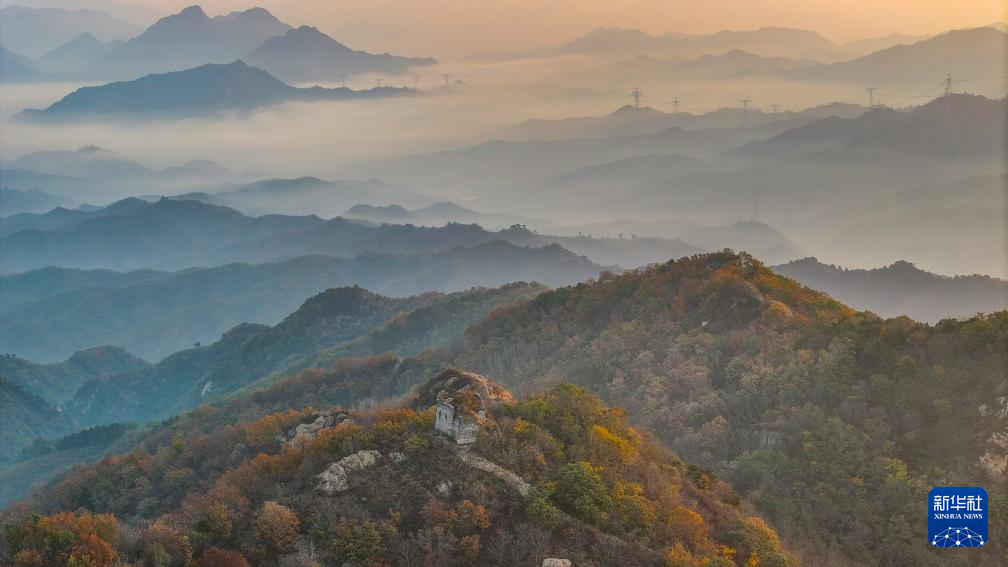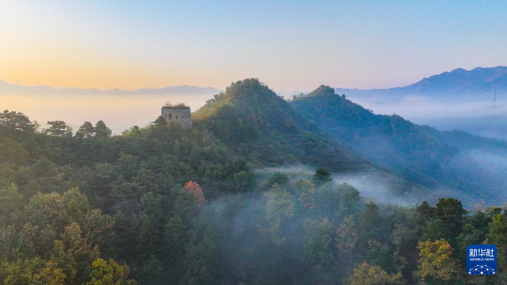 这是10月21日在河北省遵化市小厂乡拍摄的古长城晨景(无人机照片)。(新华社发 刘满仓 摄)