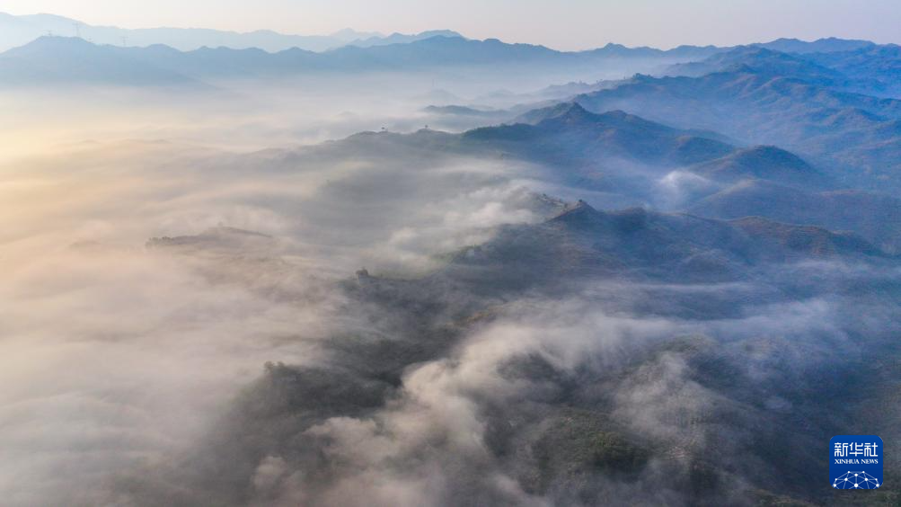 秋日的早晨,河北省遵化市小厂乡云雾飘渺,晨光中的古长城、五彩斑斓的秋叶,交相辉映,壮美如画。