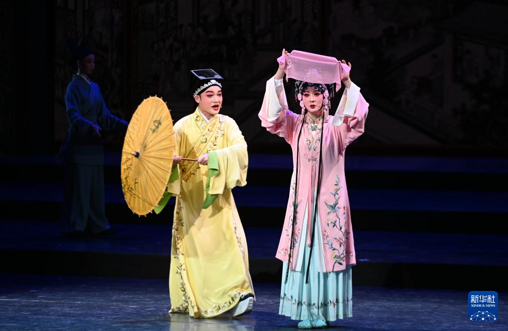 开幕式上的莆仙戏《踏伞行》选段表演(10月21日摄)。(新华社记者 林善传 摄)