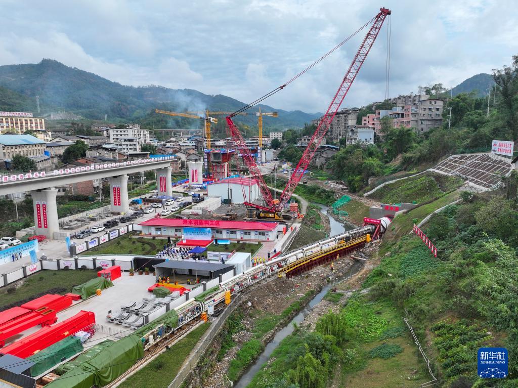 这是10月22日拍摄的西渝高铁重庆段建设施工现场(无人机照片)。(新华社记者 唐奕 摄)