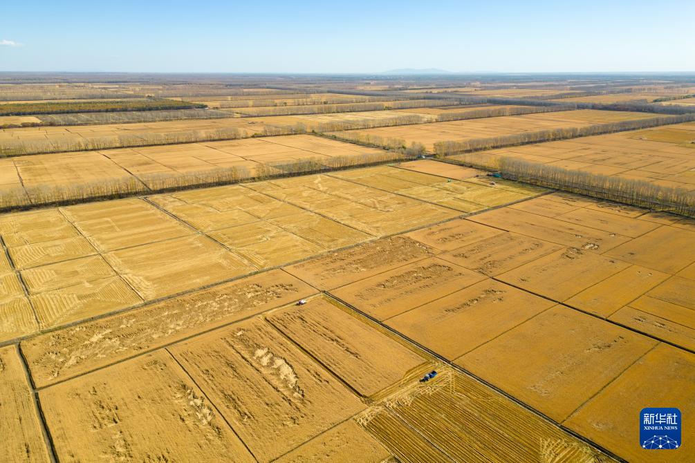 深秋时节,我国东北地区三江平原广袤的黑土地上,金色的稻穗随风摇曳,汇成一片金色的“稻海”。从清晨到日暮,在农机的轰鸣中,在勤劳的双手间,光影流转,稻浪飘香。