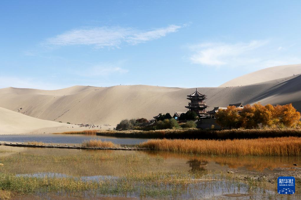 10月30日拍摄的甘肃省敦煌市鸣沙山月牙泉景区秋景。(新华社发 张晓亮 摄)