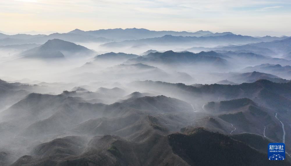 10月30日早晨拍摄的河北省遵化市山乡景色(无人机照片)。(新华社发 刘满仓 摄)