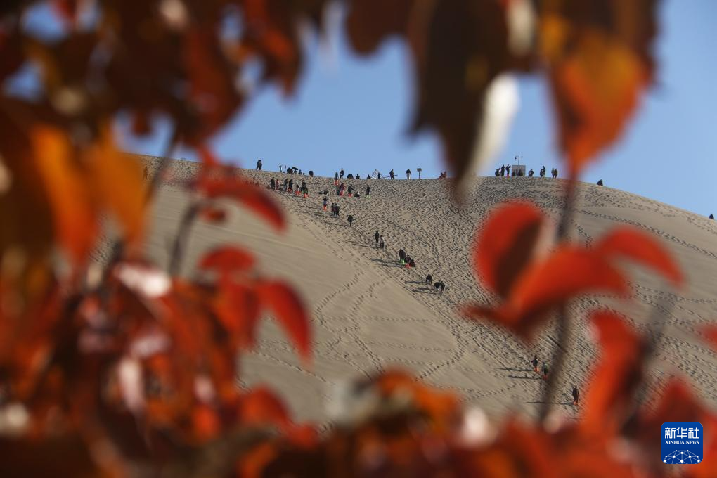 10月30日,游客在甘肃省敦煌市鸣沙山月牙泉景区游览。(新华社发 张晓亮 摄)